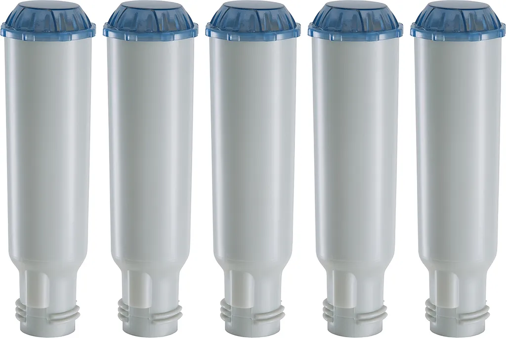 5 schraubbare Wasserfilterpatronen zur Verbesserung der Wasserqualität und geringeren Verkalkung Ihrer Maschinen. Kompatibel u.a. zu Modellen von Bosch, AEG, Siemens und Krups.