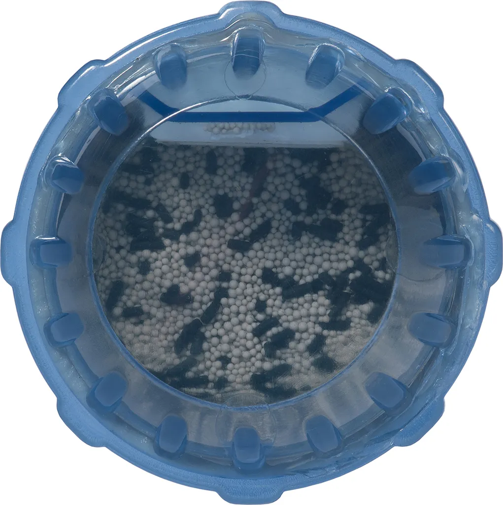 Im Vergleich zu anderen handelsüblichen Patronen hat diese noch einen Vorfilter mit einem extrem feinmaschigen Filtersieb (Durchlassöffnung 180my), damit kein Granulat durch die Rückflutung aus der Patrone in das Wasser gelangen kann.