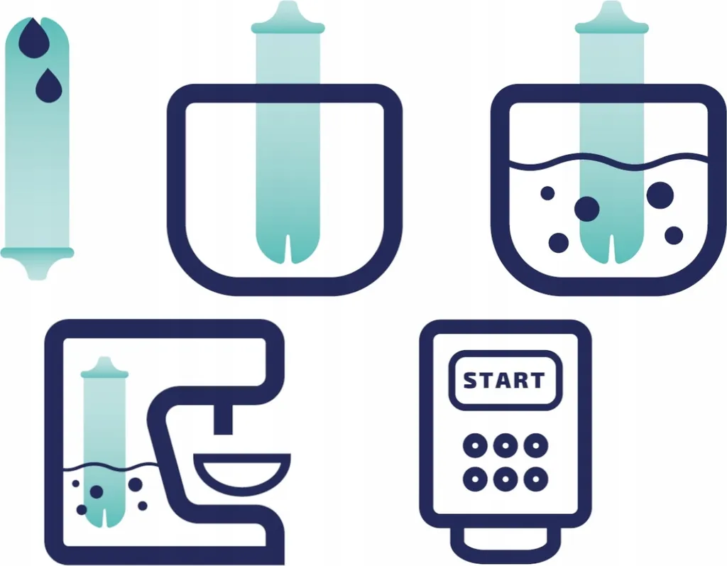 1. Wählen Sie im Menü der Kaffeemaschine die Funktion „Wasserfilter wechseln“. Nehmen Sie den Filter aus der Folie, drehen Sie ihn um und halten Sie ihn etwa 60 Sekunden lang unter fließendes Wasser.