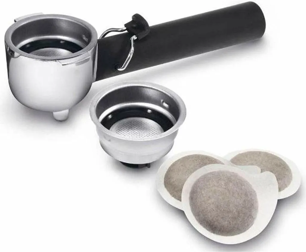 – Für Kaffeepulver und vorportionierte E.S.E. Pads (Easy Serving Espresso).