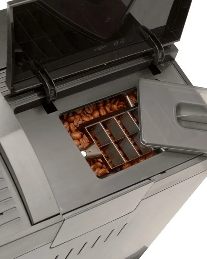 Einfach schön, schlicht und dabei so vielseitig: In mattem Schwarz erfüllt diese Maschine Kaffeeliebhabern zuverlässig alle Wünsche von köstlichen Kaffeevarianten bis Milchschaumkreationen – unschlagbar! Unser dunkles Einsteigermodell wird Ihnen lange Freude machen. – Digitales Symbol-Dialog-Display- Manueller Profi-Spumatore- Einfache Bedienung- Aromatica System mit 15 bar Pumpendruck- Bohnenbehälter (ca. 250 g)- Extra großer, entnehmbarer Wassertank (2,2 Liter)- Elegantes Design in mattem Schwarz mit Chromelementen- Leises Kegelmahlwerk aus gehärtetem Stahl- Herausnehmbare Brüheinheit für hygienische Reinigung- Kaffeetemperatur wählbar in 3 Stufen- Kaffeestärke 3-stufig einstellbar- ECO-Modus Stromsparfunktion- 0-Watt-Ausschalter- Hygiene-Pflegeprogramme: Reinigen, Entkalken und Spülen auf- Knopfdruck- Kaffeeauslauf bis zu 14 cm höhenverstellbar- Automatische Füllstandsüberwachung für Wasser- Mahlgrad 3-stufig einstellbar- Tassenabstellfläche- Pulverfach für eine Portion Pulverkaffee- Aromaschutzdeckel- Inklusive Reinigungstabletten, Milchschlauch und Portionierlöffel