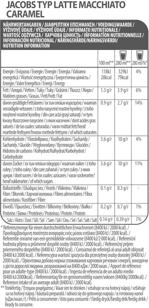 - Allergen Latte Macchiato Caramel: Milch, Milchproteine, Milchmineralien