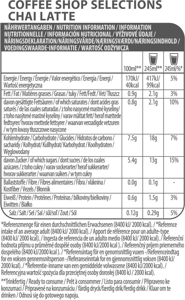 - Chai Latte, die verführerische Teespezialität mit dem Geschmack indischer Gewürze und feinem Milchschaum.
